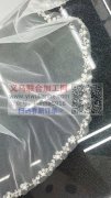 找能有机器或者手工做这种的工厂,用珍珠米珠珠片缝在网纱的边上