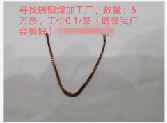 铜焊烧焊外发,寻找烧铜焊加工厂,数量6万条,工价0.1|条,链条我厂会剪好