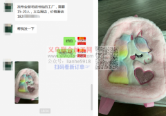 如图,找专业做毛绒书包的工厂,需要15-20人,义乌周边,价格面谈,老板在线等