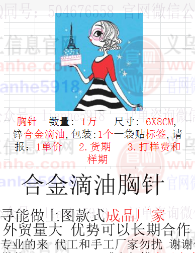 胸针订单外发,如图,寻找厂家,请联系详谈,外贸公司订单请联系详谈,地址:义乌