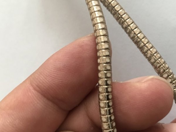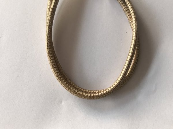 找皮绳厂家,如图订单,需求专业特殊皮绳生产厂家:金色羊皮,四面的小豆豆是表面去皮漏白底的效果。要求质量高,交期稳定的供应商。