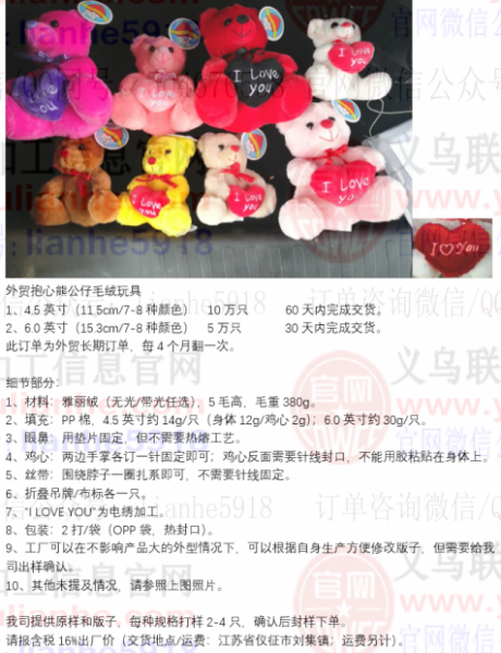 外贸抱心熊毛绒玩具订单外发寻找加工厂