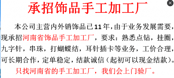 公司有穿珠子挂配件手工活外发,寻找手工活