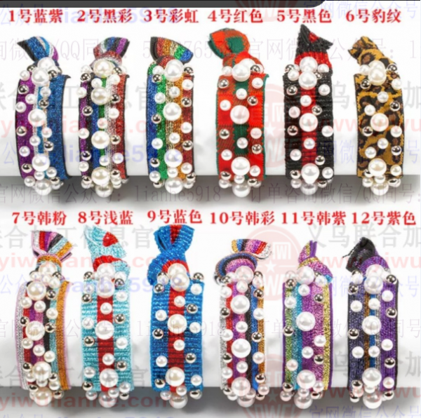 大量钉珠发圈发带订单外发,如图