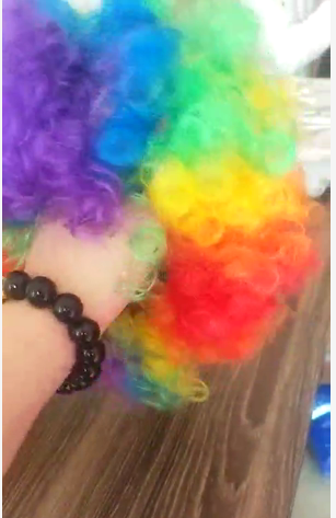 采购如图彩色假发,如图,有做这个现货的工厂加我微信详谈,地址:义乌,