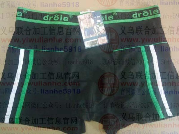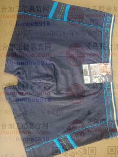 平角内裤订单外发,一年800万个,经销单,包工包料 单价3.8元。平均每月一个柜,180克的面料 CvC65-35。要求专业做内裤的实力加工厂,可以发外地,最好靠近浙江周边上下不超过500公里的。要验厂,员工不能少于80人,捣江湖的或不是加工厂请绕道。长期合作,详谈,地址:义乌,
