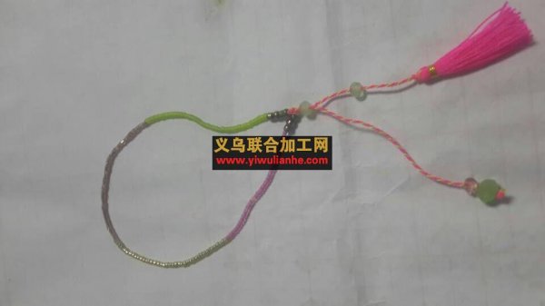 活加工厂,串米珠的,须是绑好的,红黄线要搓一下的,如图,能做的请联系详谈,找一家长期合作的