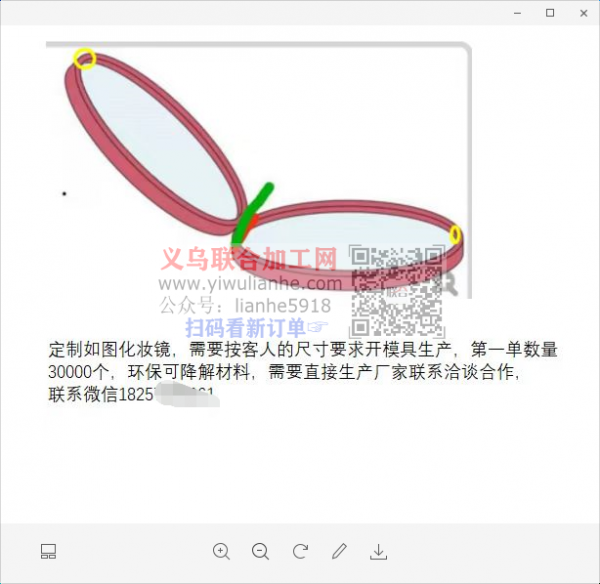 公司如图化妆镜订单外发,寻找化妆镜厂家,厂家请联系详谈,地址:义乌