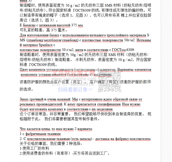 制成的防护服,寻找义乌有没加工过这种商品的工厂,,我需要 1000万套,工厂请联系我,
