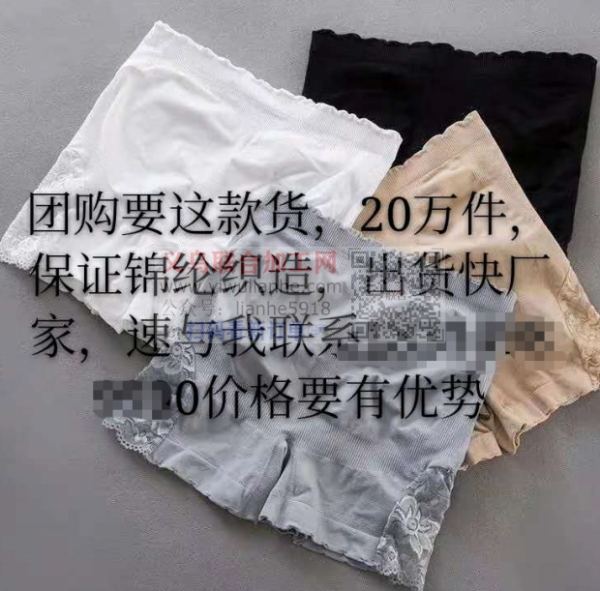 20万安全裤订单寻找厂家:如图款式,有做