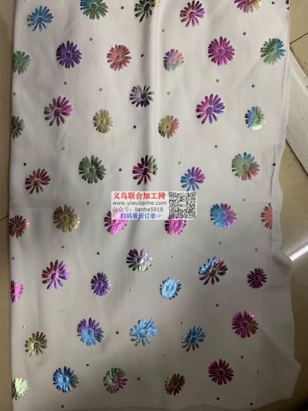 寻找能做锡箔印的工厂,七彩的,如图,印在牛奶丝面料上,微信详谈