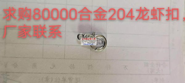 204合金龙虾扣订单,寻找厂家,有的联系