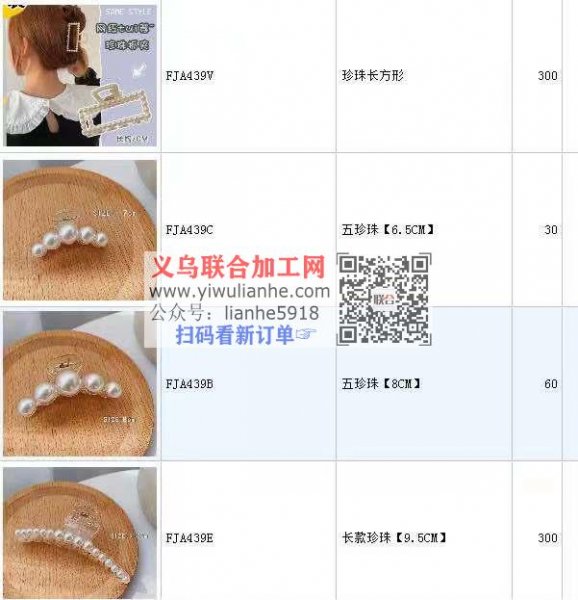 珍珠发爪成品订单:如图,寻找工厂,有做这几款的联系
