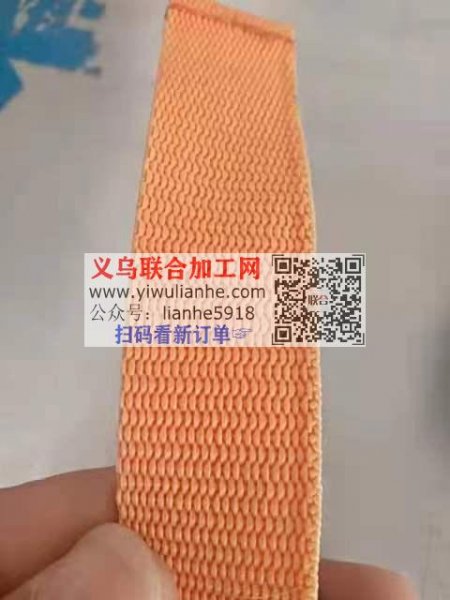 采购如图织带。这种橘黄色2.5宽克重19克左右的织带谁有?联系详谈