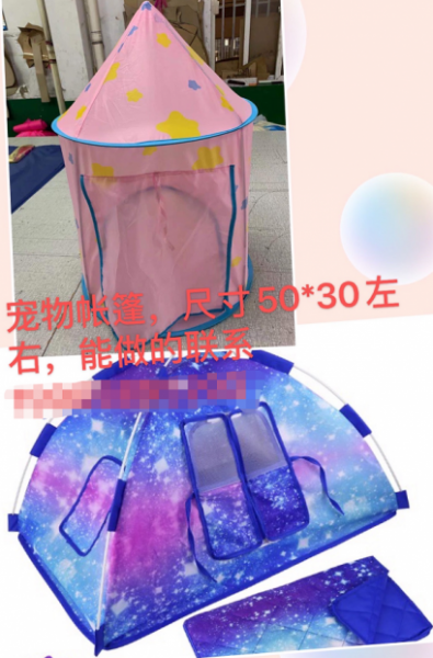 宠物帐篷订单外发,寻找能做的工厂,尺寸50*30左右,电话联系我详谈