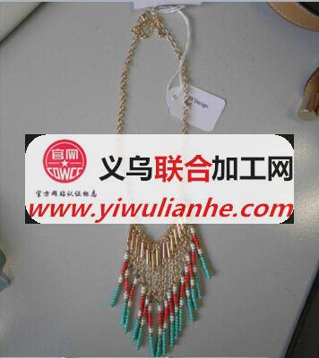 的加工厂,15个金色条子+金色链子+多色珠子,项链长度:2遍两字各长20CM,5cm延长链子,寻求专业