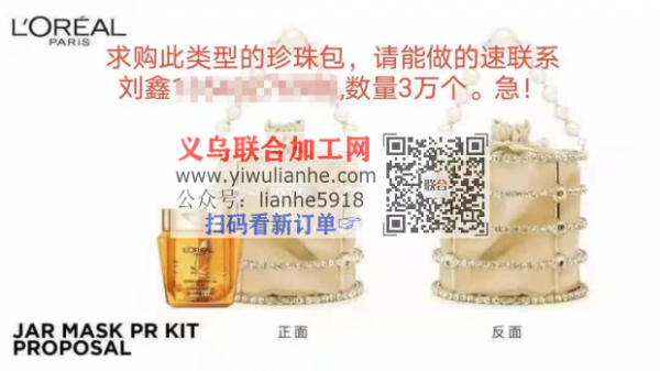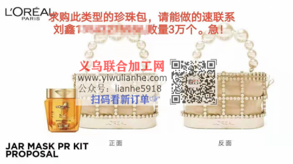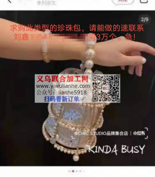 求购图片类型的珍珠包,挑中款式后订单3万个,请能做的做的速联系刘鑫