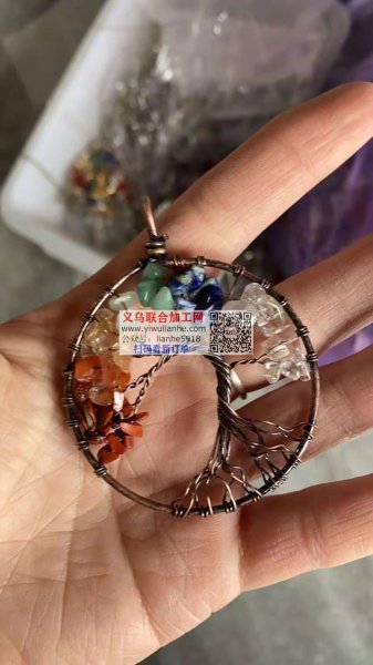本加工厂专业绕生命树、扭铜丝、绑水晶、弯针挂圈等!每天都有直达义乌往返物流