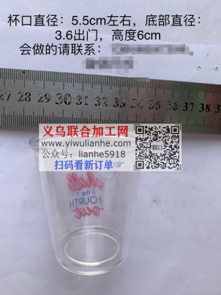找如图杯子,杯子杯口直径:5.5cm左右,底部直径:3.6出门,高度6cm,会做的联系我,联系详谈