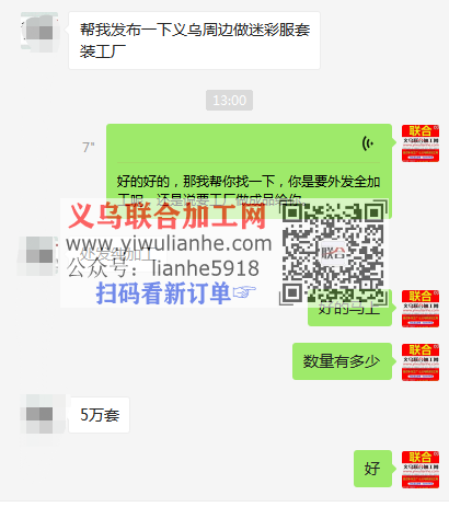 寻找义乌周边做迷彩服套装工厂,要求有实力的人多的工厂,纯加工就可以,长期合作, 详谈,地址:义乌