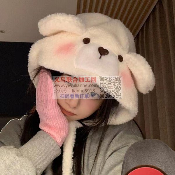 】图片款毛绒帽子外发,找平车加工厂,义乌本地的请联系我