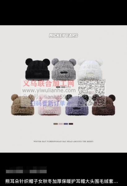 寻找有做如图帽子的工厂,熊耳朵针织帽
