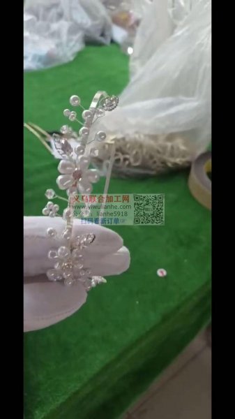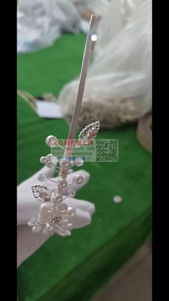 新娘饰品穿珠子绕铜丝编织花,手工活外发,