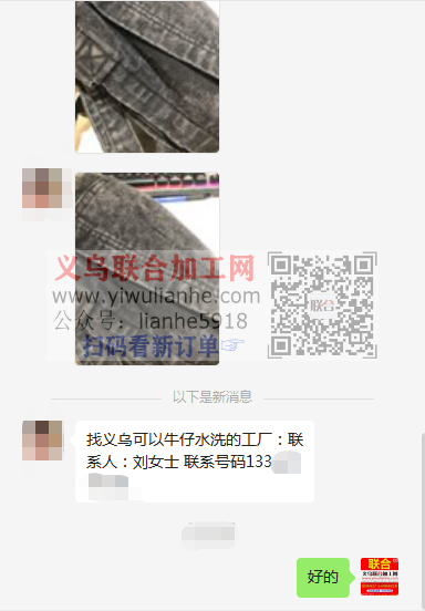 老板在线等:找义乌可以牛仔水洗的工厂,联系人:刘女士