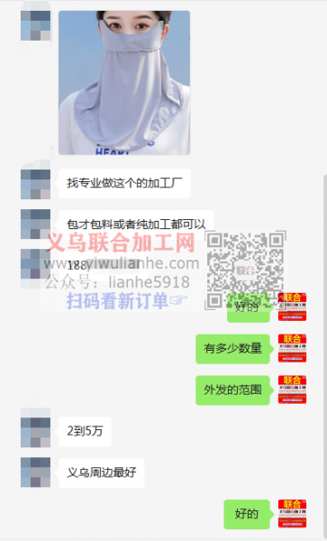 老板在线等:防晒面罩外发,数量2到5万,包材包料或者纯加工都可以,找专业做这个的加工厂,义乌周边最好