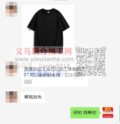 老板在线等:需要找在义乌可以加工体恤的工厂 可以做的联系我