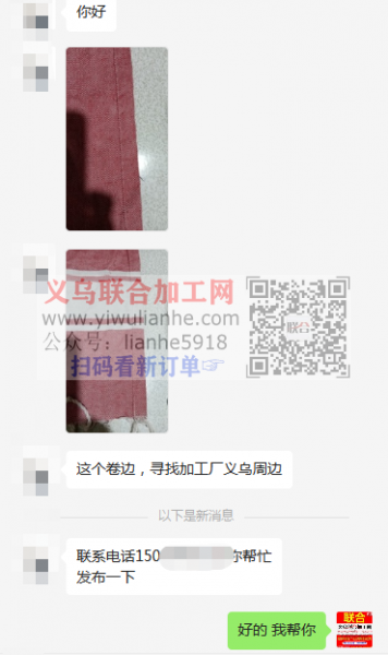 老板在线等:这个卷边,寻找加工厂义乌周边,是毯子,就卷两边,能做的联系电话