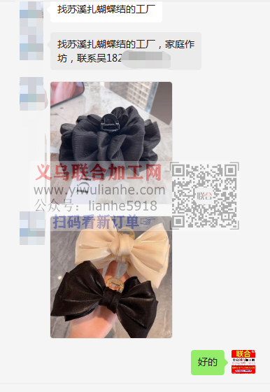 老板在线等:如图,找苏溪扎蝴蝶结的工厂,家庭作坊,联系吴
