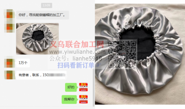 寻找能做睡帽的加工厂。1万个