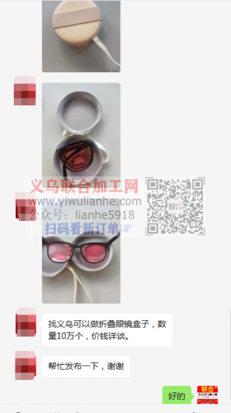 】找义乌可以做折叠眼镜盒子,数量10万个,价钱详谈。老板在线等