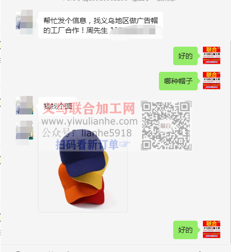 找义乌地区做广告帽的工厂合作!周先生