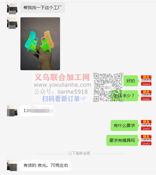 如图,夜光玩具枪工厂,有货的联系