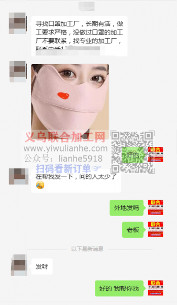 老板在线等:寻找口罩加工厂,长期有活,做工要求严格,没做过口罩的加工厂不要联系,找专业的加工厂,联系电话详谈