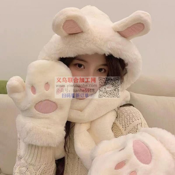 毛绒三件套保暖围巾帽子外发加工