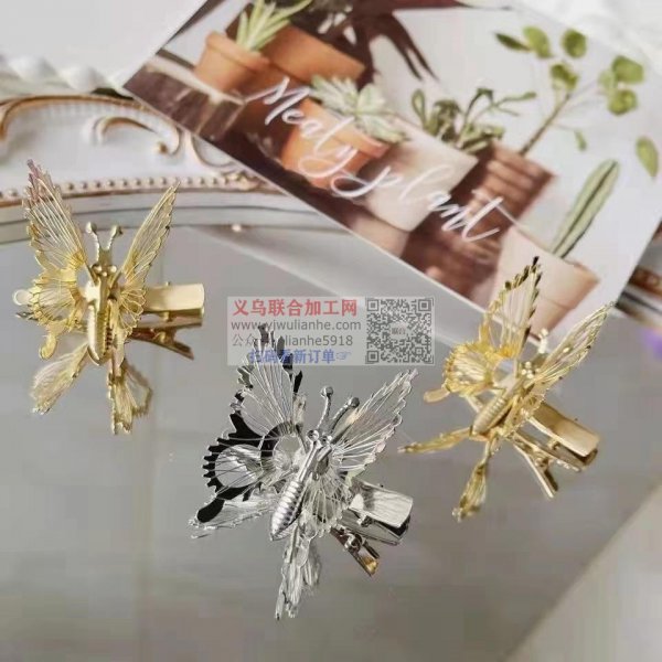 大量弹簧蝴蝶发夹成品订单,寻找厂家,如图,电话详谈