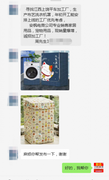 加工厂,生产布艺洗衣机罩,年初开工能安排上线的工厂优先考虑,
