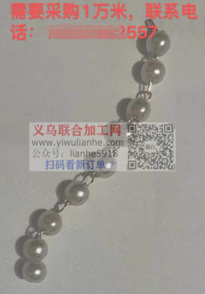 10000米珍珠链订单,寻找厂家,如图,寻找4.0直接厂家,需要采购1万米,联系电