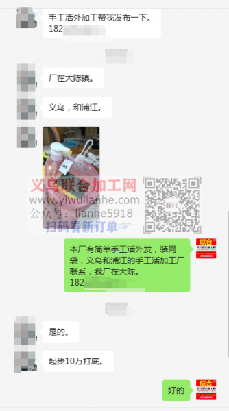本厂有简单手工活外发,装网袋,义乌和浦江