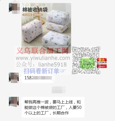 要马上上线,寻找能做这个棉被袋的工厂,人要50个以上的工厂,长期合作