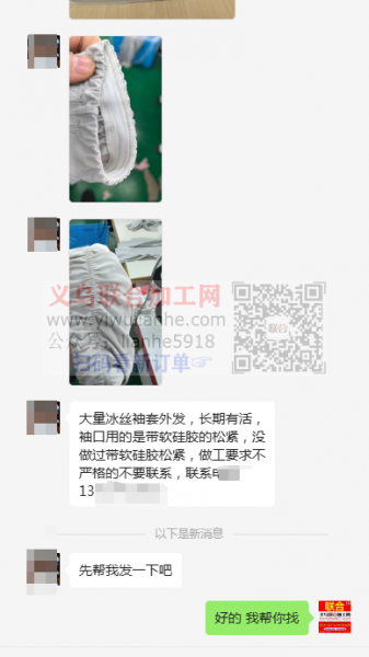 大量冰丝袖套外发,长期有活,袖口用的是带软硅胶的松紧,没做过带软硅胶松紧,做工要求不严格的不要联系