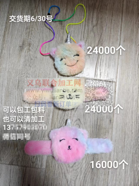 公司毛绒玩具单子外发【可发外地】,交货期6/30号,三款24000个24000个16000个,可以包工包料,也可以清加工,为了方便跟单,工厂离义乌300公里以内都可以