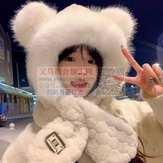 平车活外发,发义乌周边,两件套毛绒帽子围