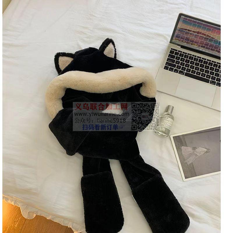毛绒保暖围巾帽子手套单件套订单,如图,寻