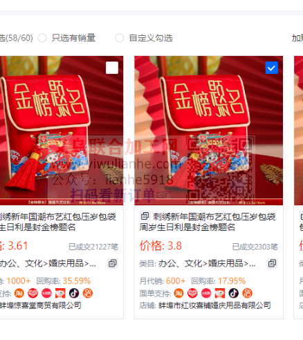 寻找生产刺绣红包的工厂,如图