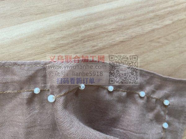 找头巾加工厂,下面图片款的加工厂,或者说,这个围巾上的珠子,这些珠子是用线穿好的,这个
