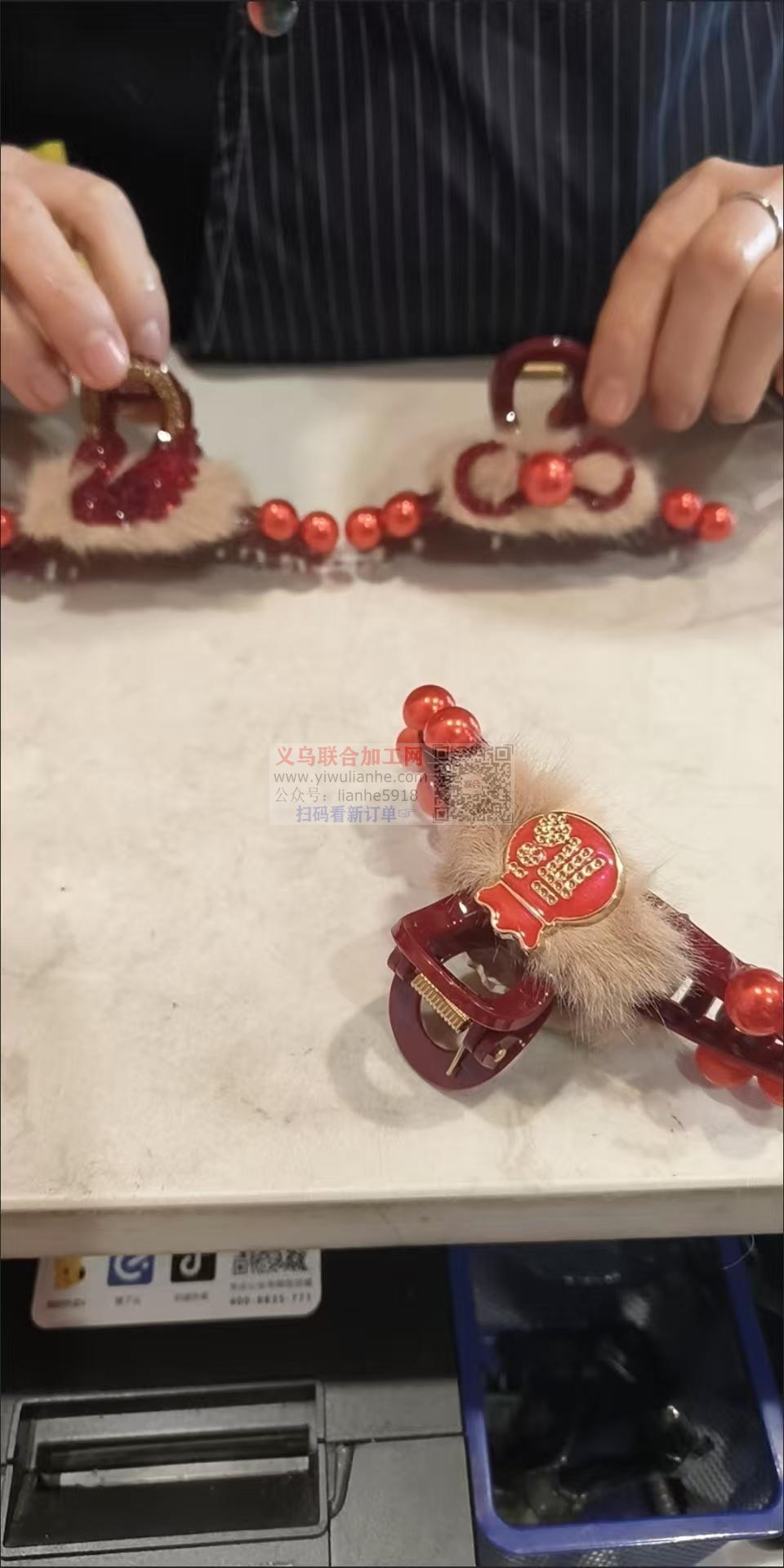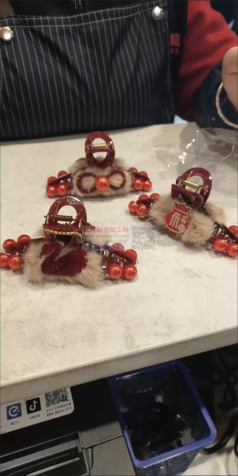 大量如图毛绒系列贺年大红色爪夹成品订单,